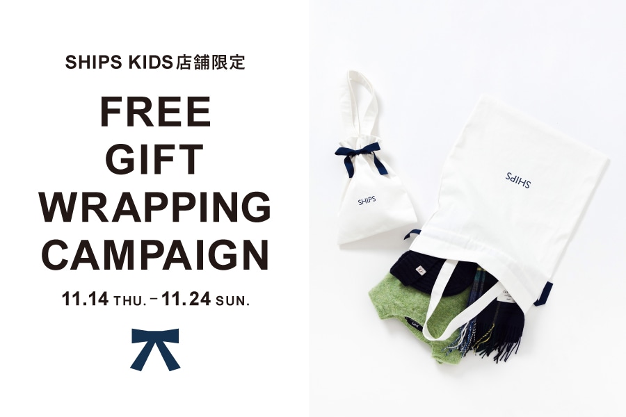 11月14日(木)から11月24日(日)までSHIPS KIDS店舗限定で、通常は有料でご用意している巾着型ギフトトートバッグを、期間中は5,000円(税込)以上ご購入につき1枚無料とさせていただきます。