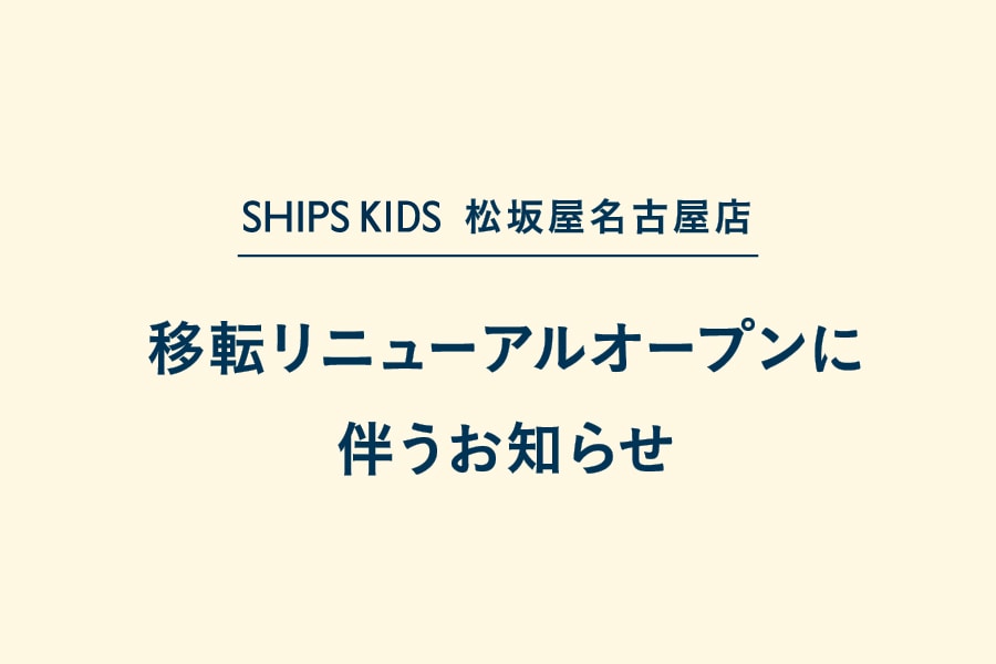 SHIPS KIDS 松坂屋名古屋店は、今春に移転リニューアルオープンを予定しております。