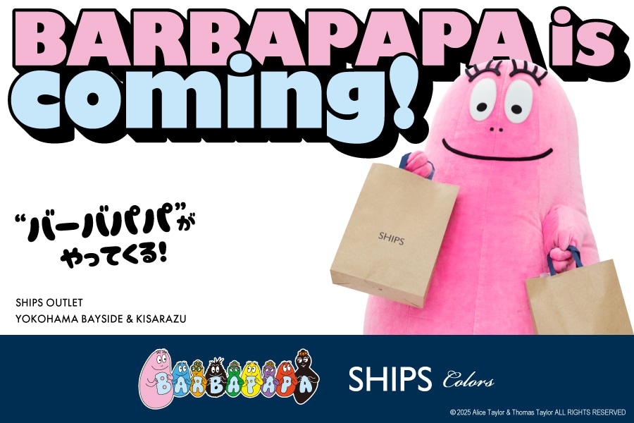 さらに、SHIPS OUTELT ベイサイド横浜店ではバーバパパ来店日に合わせて「三井アウトレットパーク 横浜ベイサイド Cブロック1F くじらの大屋根広場」にバーバパパカーが登場!フォトスポットとしてお楽しみいただける特別な2日間です。