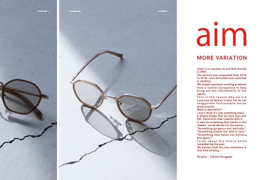 「華やかで繊細なもの」、「素朴だけど芯があるもの」、「目的(aim)の手助けになるもの」を表現するアイウェアブランド。