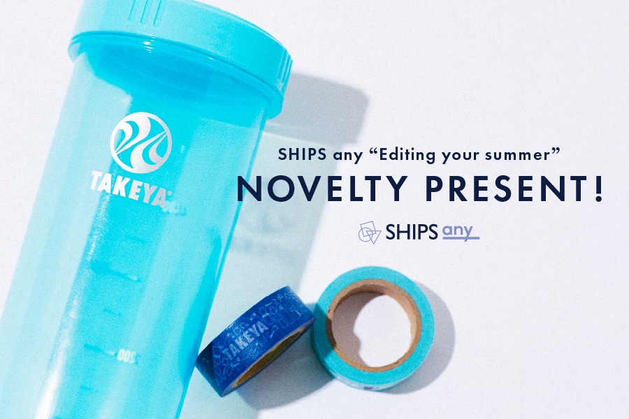 7月31日(木)〜8月24日(日)の期間中、SHIPS anyの各店にて、〈TAKYA FLASK〉の商品をお買い上げのお客様に、TAKEYAオリジナルのシェイカー、またはマスキングテープのいずれかをノベルティとしてプレゼントいたします。