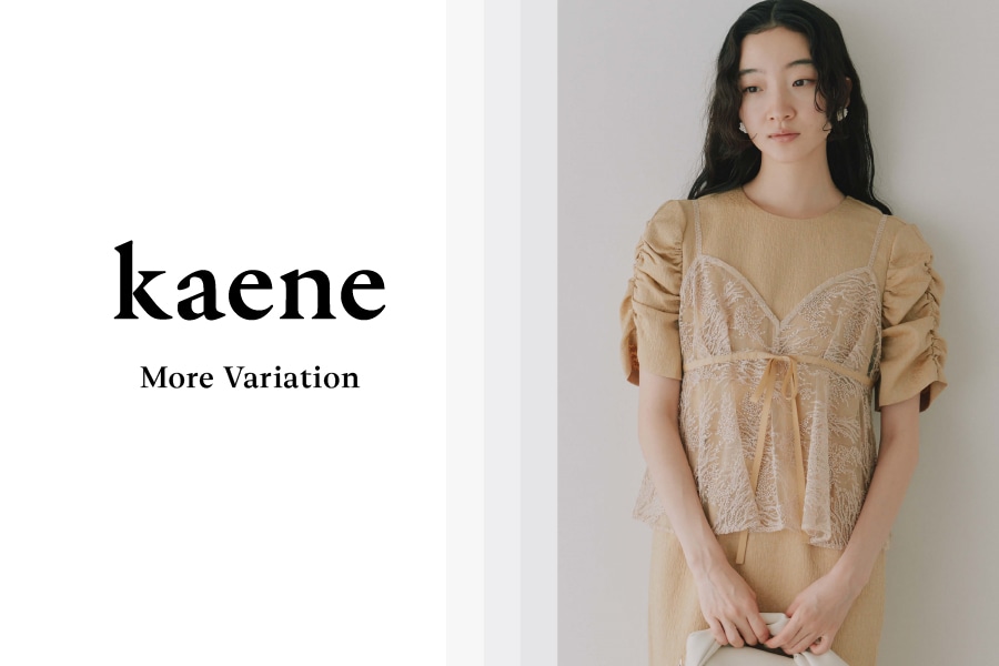 異素材の組み合わせやレース使いなど、kaeneならではの繊細さと個性が光る一着を、ぜひ店頭にてご覧ください。