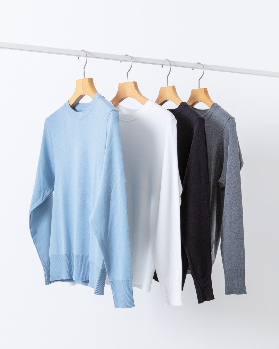 天然素材ならではのやさしい肌ざわりが魅力のカットソーは、1枚ではもちろん、重ね着でも快適に着ていただけます。
