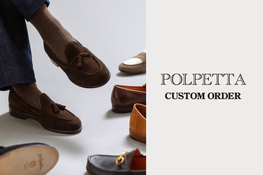コンセプトは「足元を主役にした大人のためのシューズ」。ボロネーゼ縫製はpolpettaの代表する仕様で、緻密な設計が必要とされる製法で作られた靴は足を包み込むような履き心地が魅力です。
