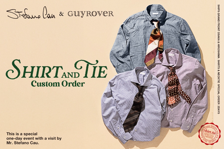 毎回好評の〈Stefano Cau〉のオーダーイベントと合わせて、〈GUY ROVER〉のシャツオーダーもお受け出来る「Shirt & tie custom order」をSHIPS 広島店とSHIPS グランフロント大阪店の2店舗限定にて1日限りのスペシャルイベントを開催いたします。