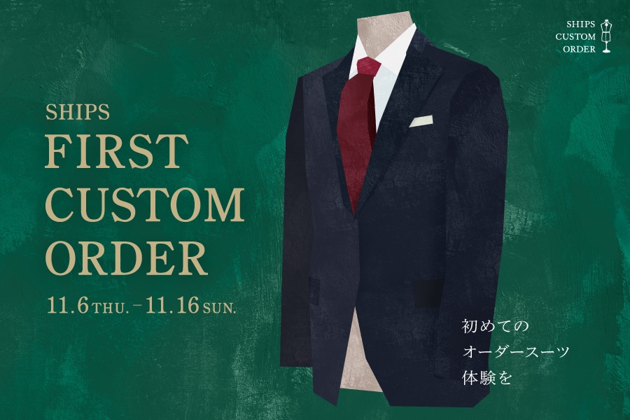 お客様それぞれのお好みや体型に合わせたオーダーメイドサービス[SHIPS CUSTOM ORDER]より、オーダースーツを初めて体験される方にもお楽しみいただける「SHIPS FIRST CUSTOM ORDER」を開催いたします。