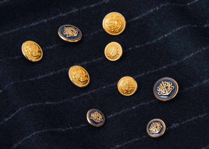 SHIPS 50周年を記念したオリジナルエンブレムボタンもオプションにてお選びいただけます。