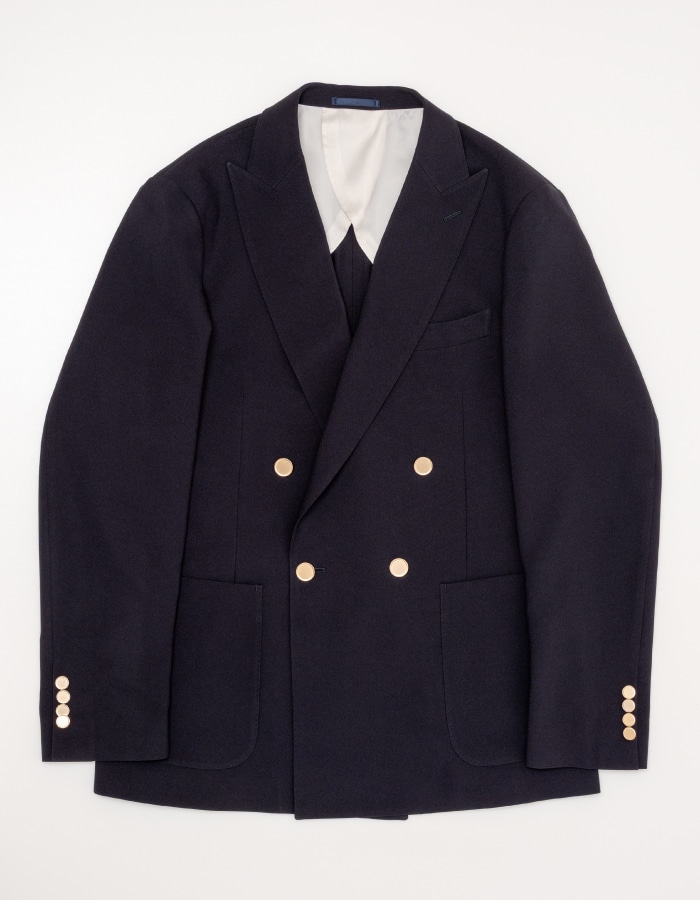 オーセンティックなWブレザーが持つ品格や構造美はそのままに、特別な日だけの服ではなく、チノパンツやデニムと合わせて日常的に着られる、汎用性の高いオーセンティックなWブレザーとなっています。