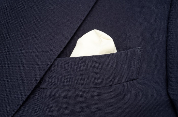 モダントラディショナルなデザインをベースに、軽快なアンコン仕立てを採用しており、ダブルでありながら日常的に羽織りやすいバランスに仕上がっています。肩先が角張らないよう調整された肩傾斜と袖山のパターンは、日本人の体型に自然に馴染むポイントです。