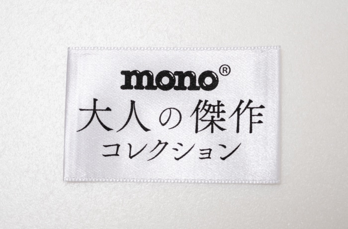 モノ・マガジンと大栄既製服株式会社のコラボ企画「大人の傑作コレクション」と題した、袖タグも商品に配しています。
