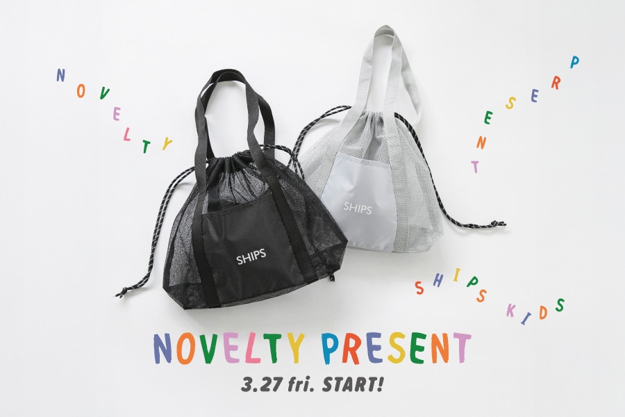 3月27日(金)より、SHIPS KIDS各店及びSHIPS 公式オンラインショップにて、SHIPS KIDSの商品を¥15,000(税込)以上お買い上げのお客さまに、「オリジナルメッシュバッグ」をプレゼントいたします。
