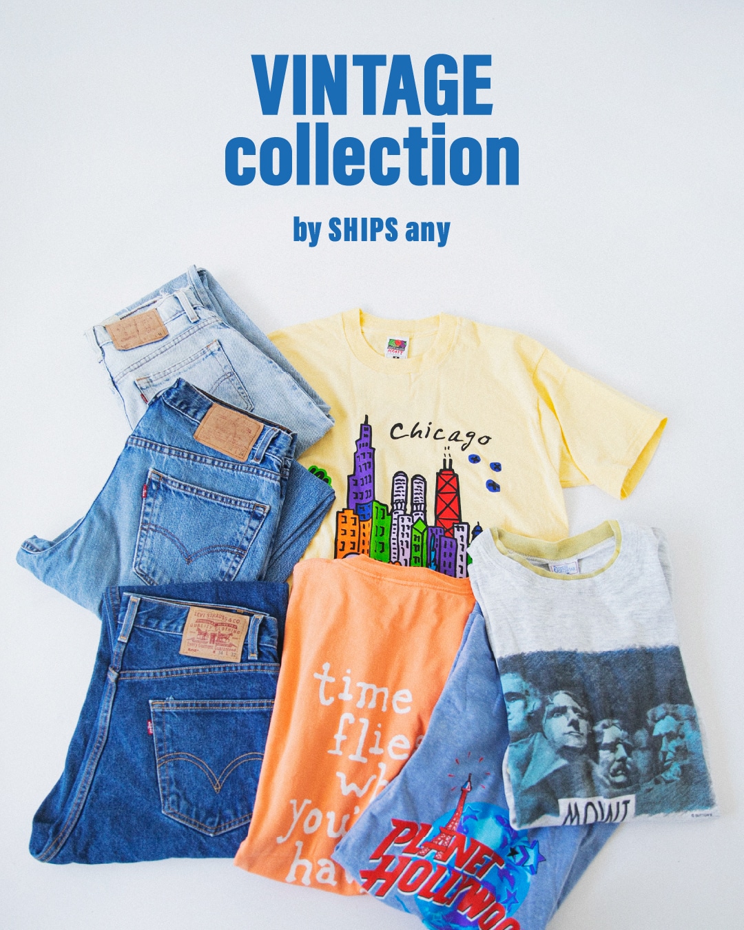 懐かしのデザインや今な気分のグラフィックが施されたTシャツをはじめ、シャツやデニムなどのアイテムをバイヤーが集めました。一点物のデザインをお見逃しなく!