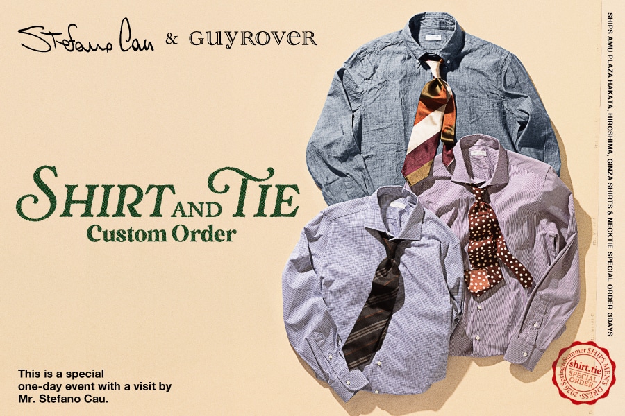 前回開催時も好評だった〈Stefano Cau〉のオーダーイベントと合わせて、〈GUY ROVER〉のシャツオーダーもお受け出来る「Shirt & Tie Custom Order」をSHIPS アミュプラザ博多店・広島店・銀座店の3店舗限定にて1日限りのスペシャルイベントを開催いたします。