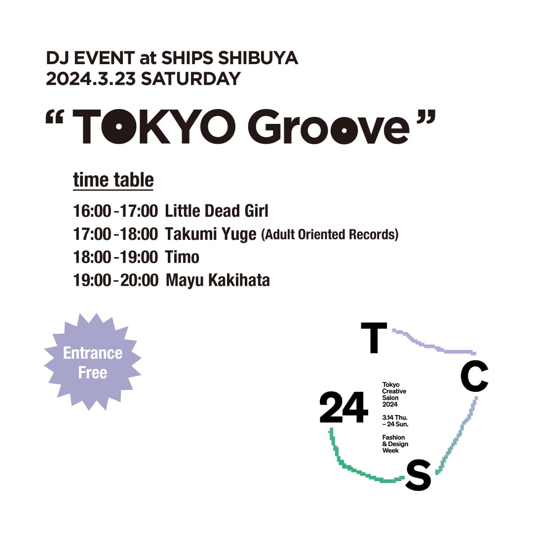 3/23(土) DJイベント"TOKYO Groove"をSHIPS 渋谷店で開催!国内最大級のファッションとデザインの祭典 「TCS24」