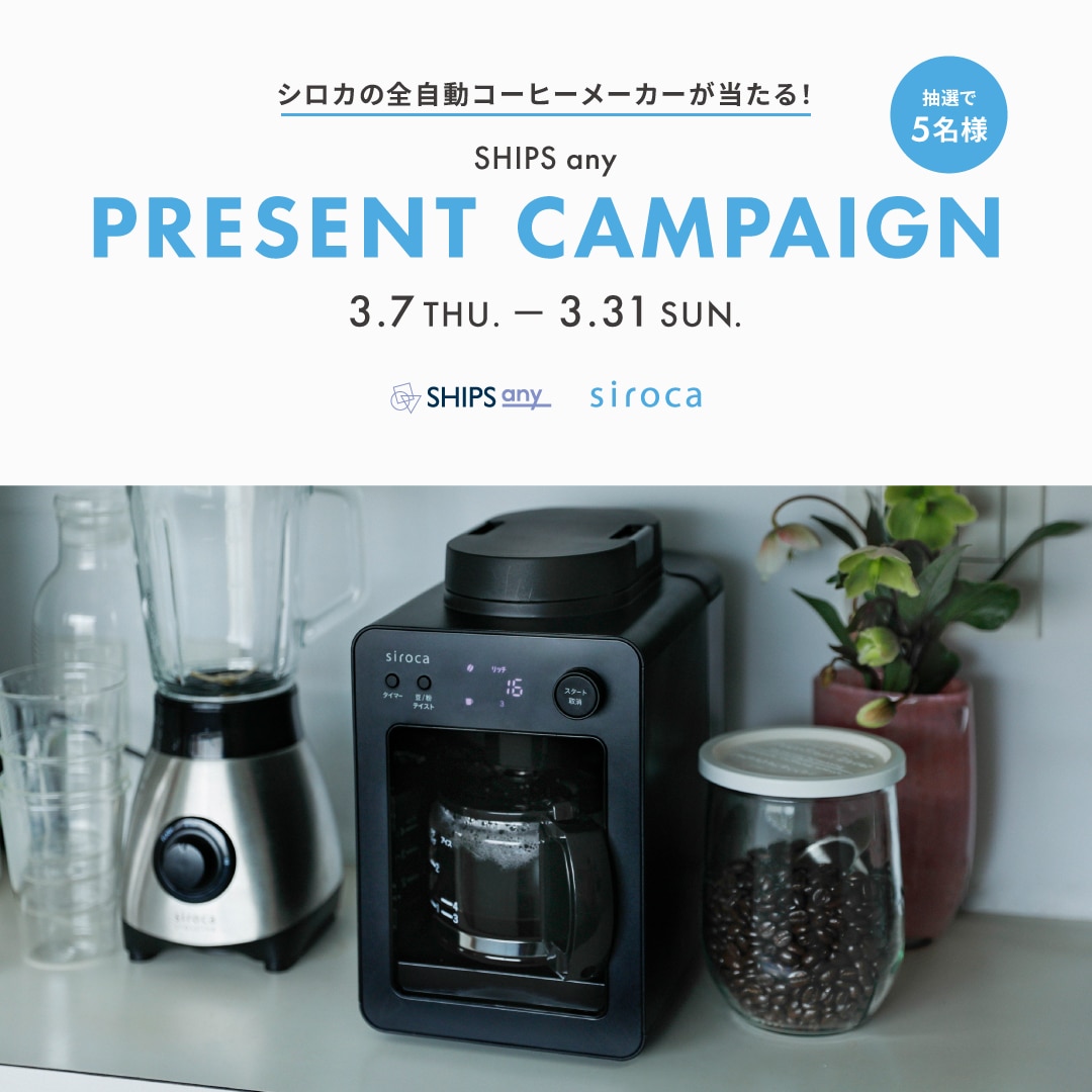 シロカの全自動コーヒーメーカーが当たる! SHIPS any プレゼントキャンペーン
