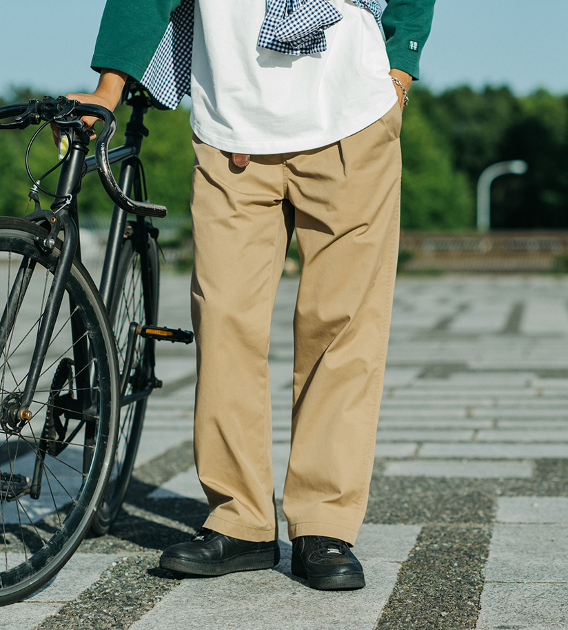 ストレッチや吸水性、UVカットなど豊富な機能が詰まった定番のチノパン。ゆるやかなテーパードシルエットなので足元がもたつかず、すらっとした脚のラインを引き立てます。普段着にはもちろん、ビジネスシーンにも使えるきれいめパンツです。