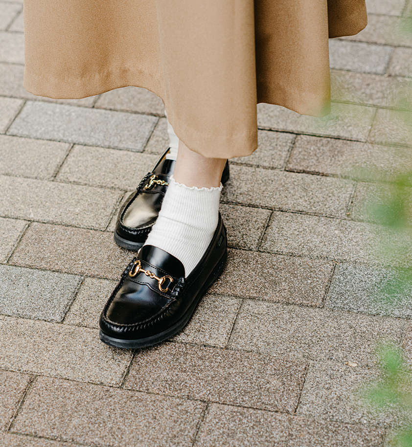 ワンピースやカジュアルなパンツスタイルとも相性の良い、愛用の黒のビットローファー。「普段からフラットか、少しヒールのある靴が好きです。足首の素肌を少しだけ見せることで、女性らしさを表現できるかな、と」。