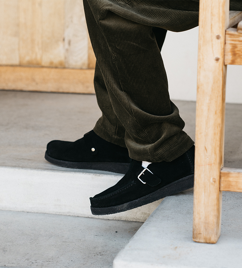 イギリス・アラン島の漁師たちが履いていた靴をインスピレーション源としたスエードシューズ。現在廃盤となっているARRANモデルを〈PADMORE & BARNES〉に別注し復刻しました。イタリア・トスカーナ地方のタンナーから届けられたきめ細やかで美しいレザー素材。クレープソールで、革靴だけど硬すぎないフォルム。カジュアルにもきれいめにも、さまざまなスタイルに合わせられます。