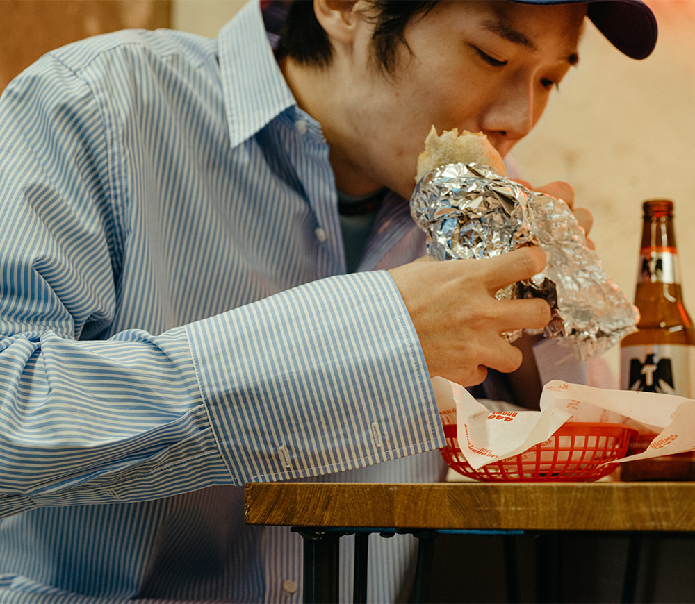 - 「友達と家で遊ぶ時は、よくこのお店でドカッとデリバリーを頼んで、みんなでパーティのような感じで食べるんです。今日は初めて店舗に来ましたが、ついいつもの感覚で、いろんなメニューを頼みたくなりますね」。