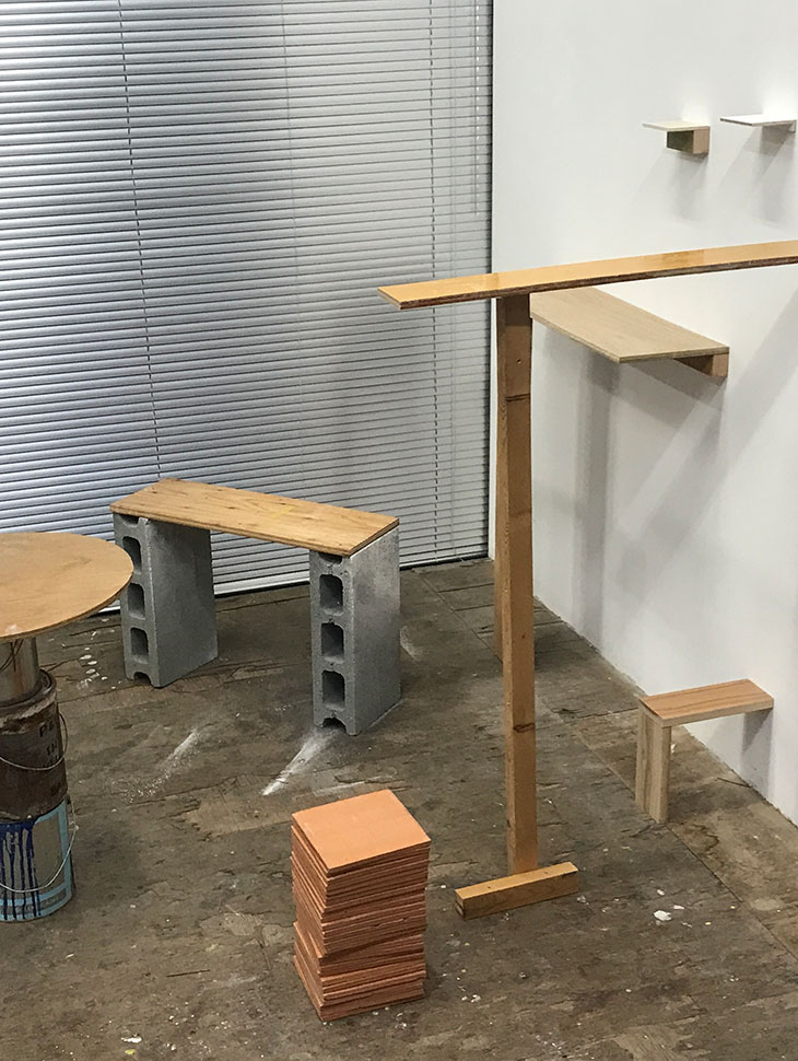 橋さんの大切な場所。左)2016年から葛西でスタートしたアトリエ兼ギャラリースペース。「去年の改装中の様子。壁を白く塗り直したり、裏のキッチンを施工し直したり。公共空間のようなオープンな場にしたくて、住所をそのままスペースの名前にしています」左中)去年ギャラリーで開かれた、写真家・濱田晋さんの展示の設営風景。「この時は、作品を置くための什器を製作させてもらいました」右中)趣味のバイクで房総へ。「険しい林道をオフロードバイクで走ります」右)友人と登った鳥取県の大山。「いつもと見える景色も、使う筋肉もこんなに違うんだって、感動でした」