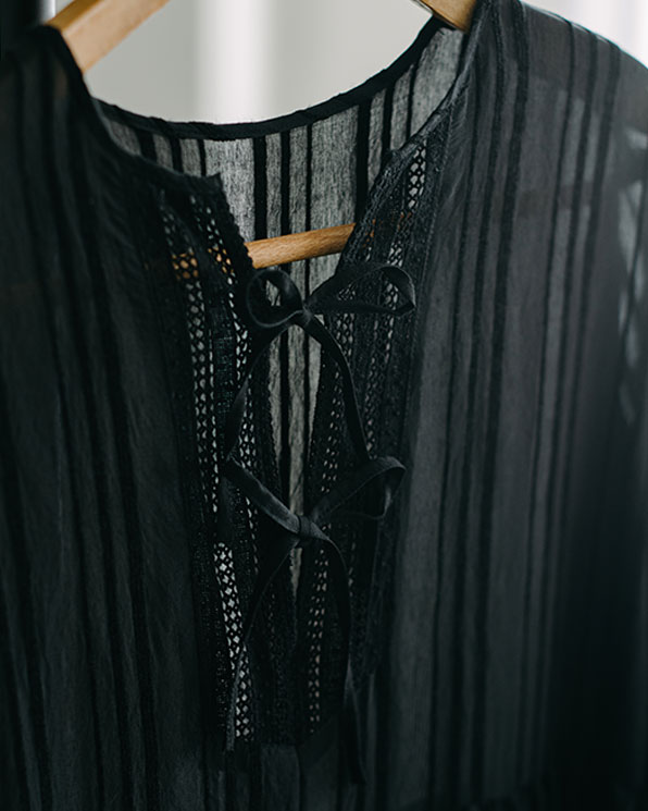 - A一枚着るだけでサマになって、楽なところです(笑)。急いでいる朝や何も考えたくないときに、とても頼りにしています。さまざまなシルエット、色、テイストのワンピースを数え切れないくらい持っていますが、どこかに抜け感があるものが好きです。なかでもブラックのワンピースはフォーマルな場でも着ることができて、すごく汎用性の高いアイテムだと思います。
