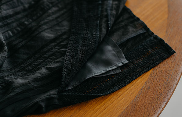 - A〈メゾン マルジェラ〉の2017年のコレクションラインのワンピースです。色は黒で、きれいな刺繍が入っていて一目惚れでした。初めてってくらい高価で特別な買い物だったけれど、自分をステップアップさせてくれた思い入れのある一着です。