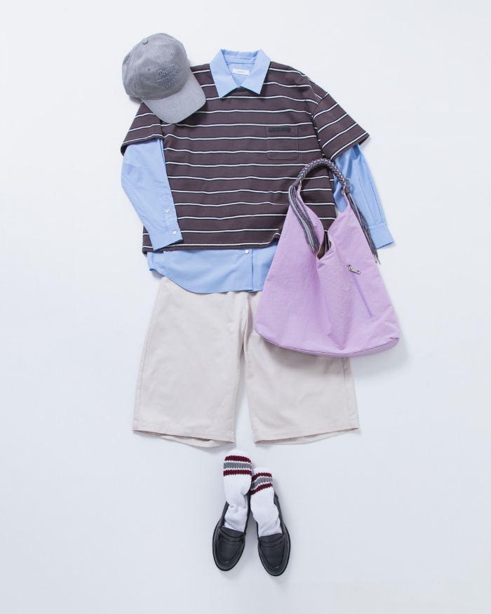 定番ボーダーは、中にシャツを仕込んでレイヤードで魅せるのがトレンド。ハードル高めなハーフパンツも、クラシカルなローファーを合わせるのが大人の正解バランス。フレンチな要素をひとさじプラスして、ワンランク上の大人カジュアルを完成させて。