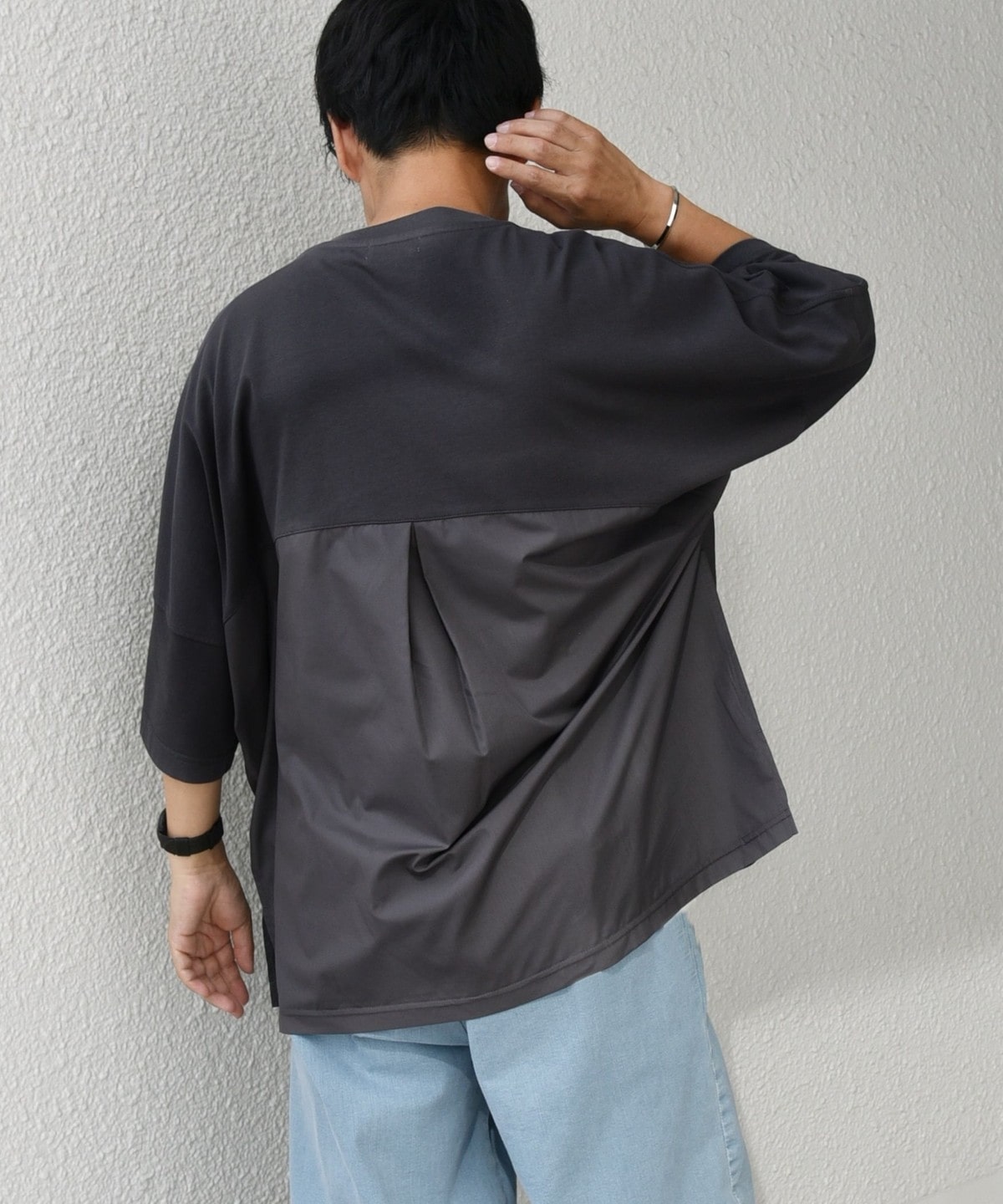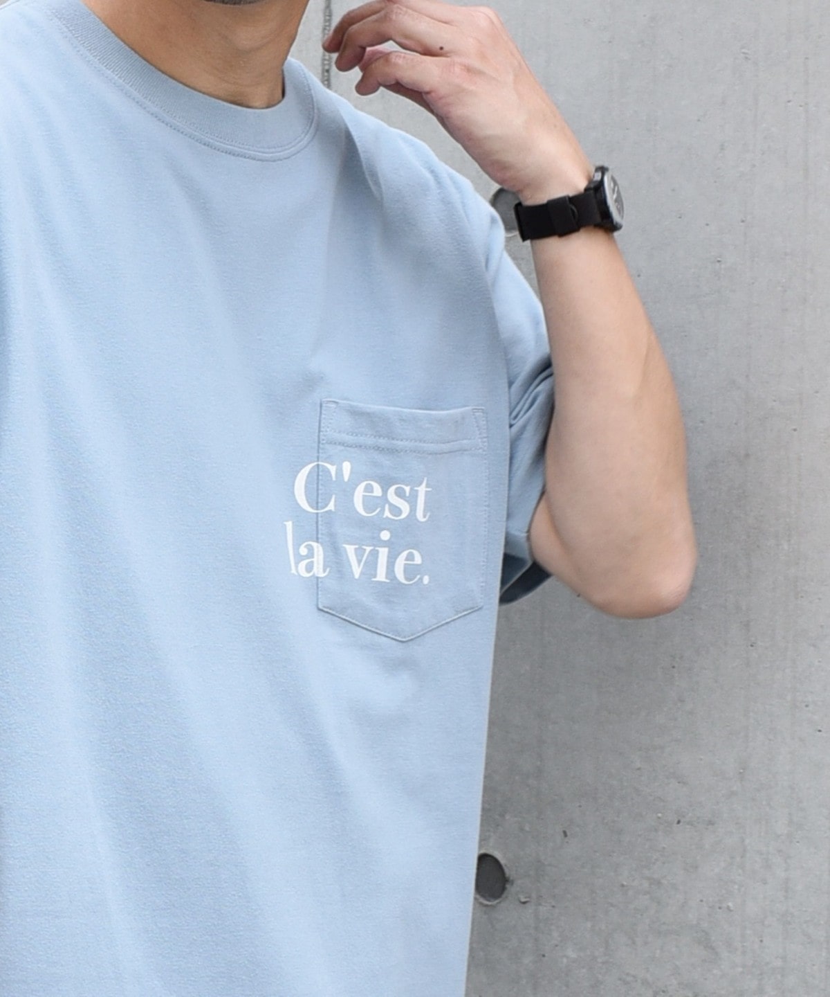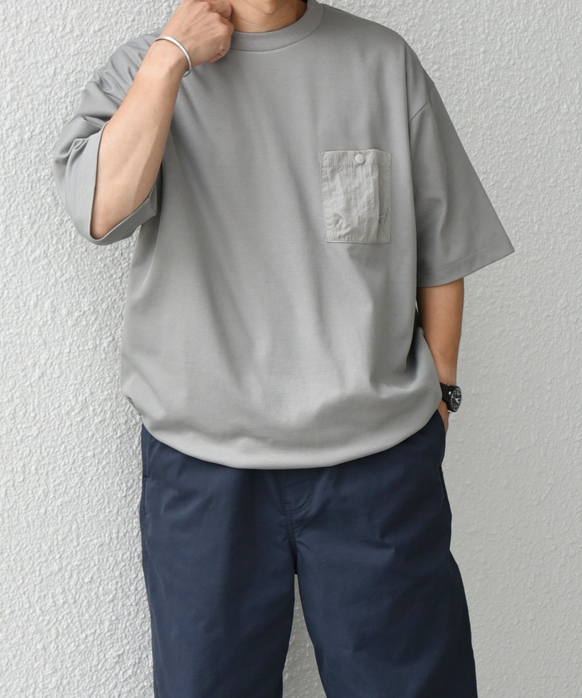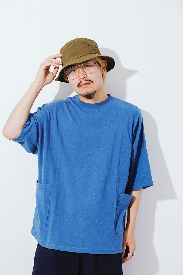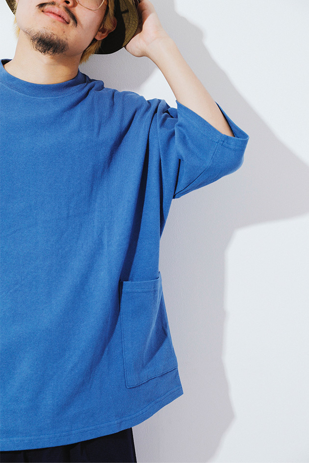 無地Tはシルエット勝負といっても過言ではない。シンプルだからこそ、ちょっとしたディテールやサイジングにこだわって選びたい。今は少しルーズでリラックスシルエットが気分。アウトドアなムードが出るキャンプポケットも他と差がつくチャームポイントに。