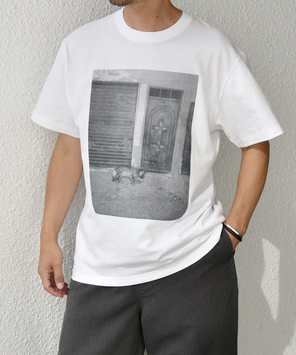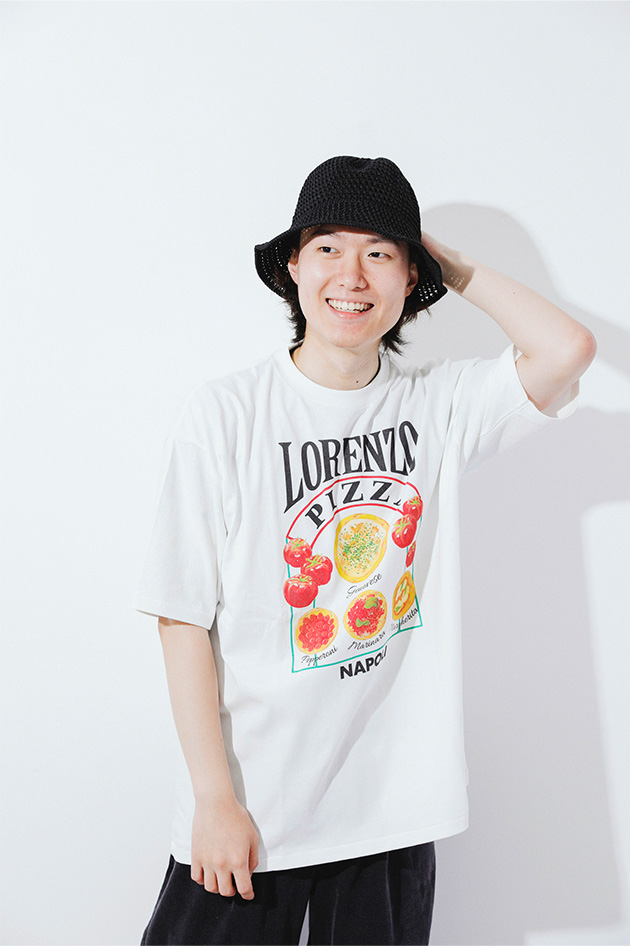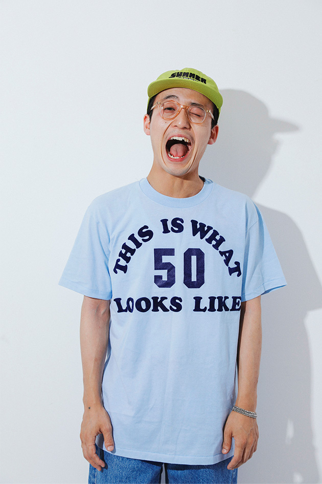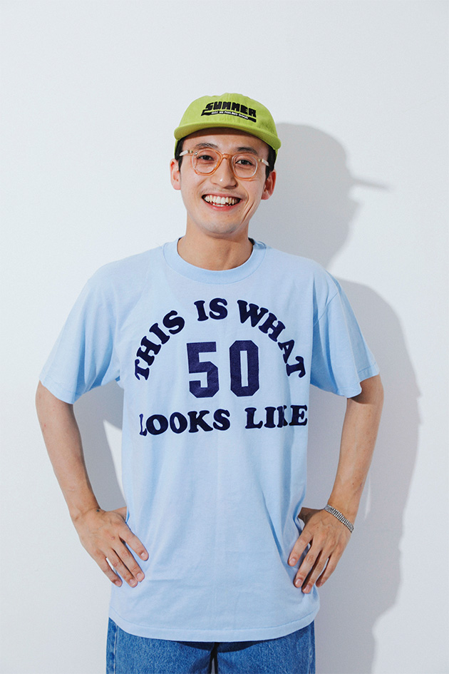 夏だからこそ、Tシャツだからこそ、POPでファニーなプリントが活きてくる。遊び心満載のTシャツはあえてさらっとシンプルに着るのが◎。引き算のスタイリングで小粋な仕上がりに。
