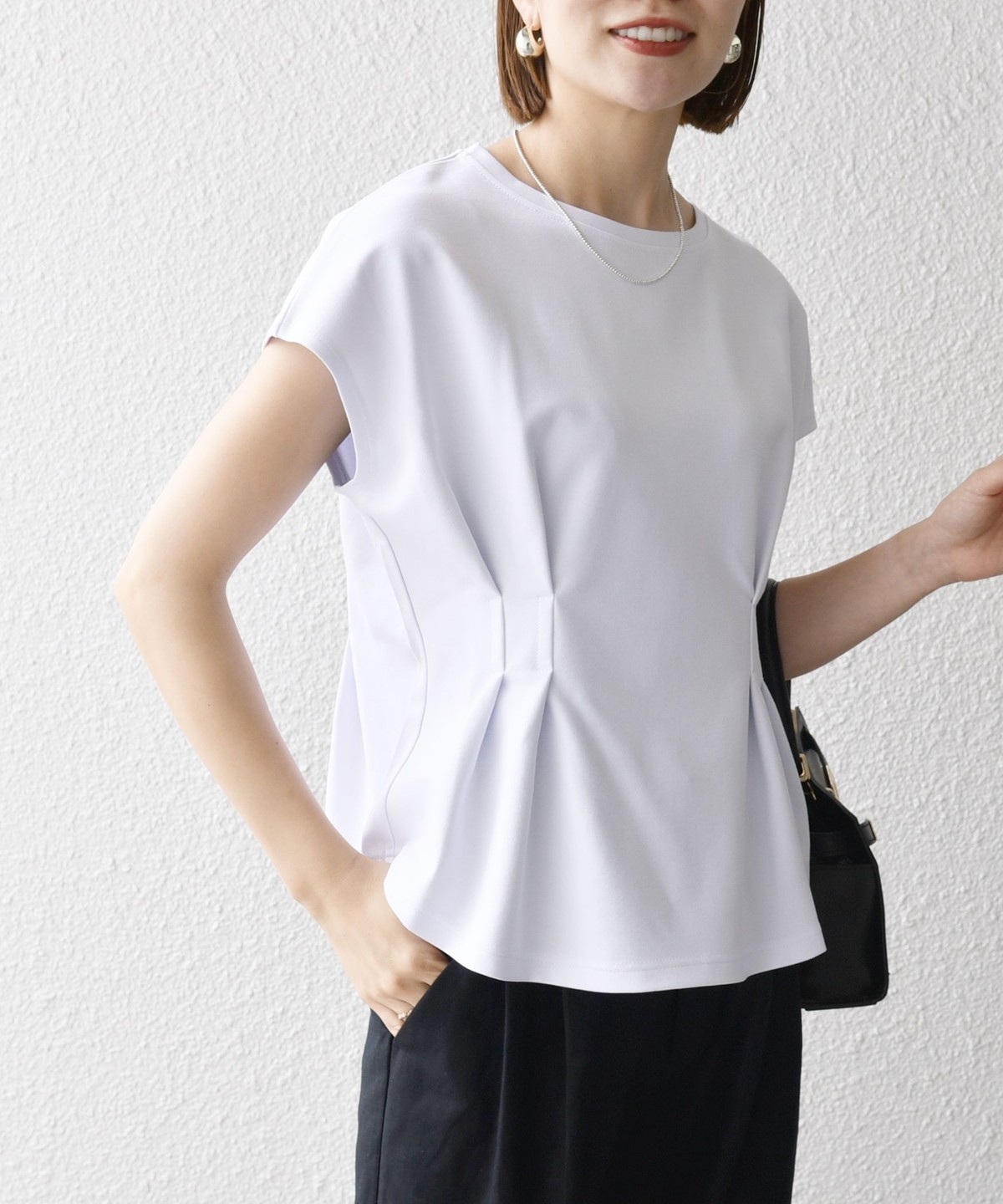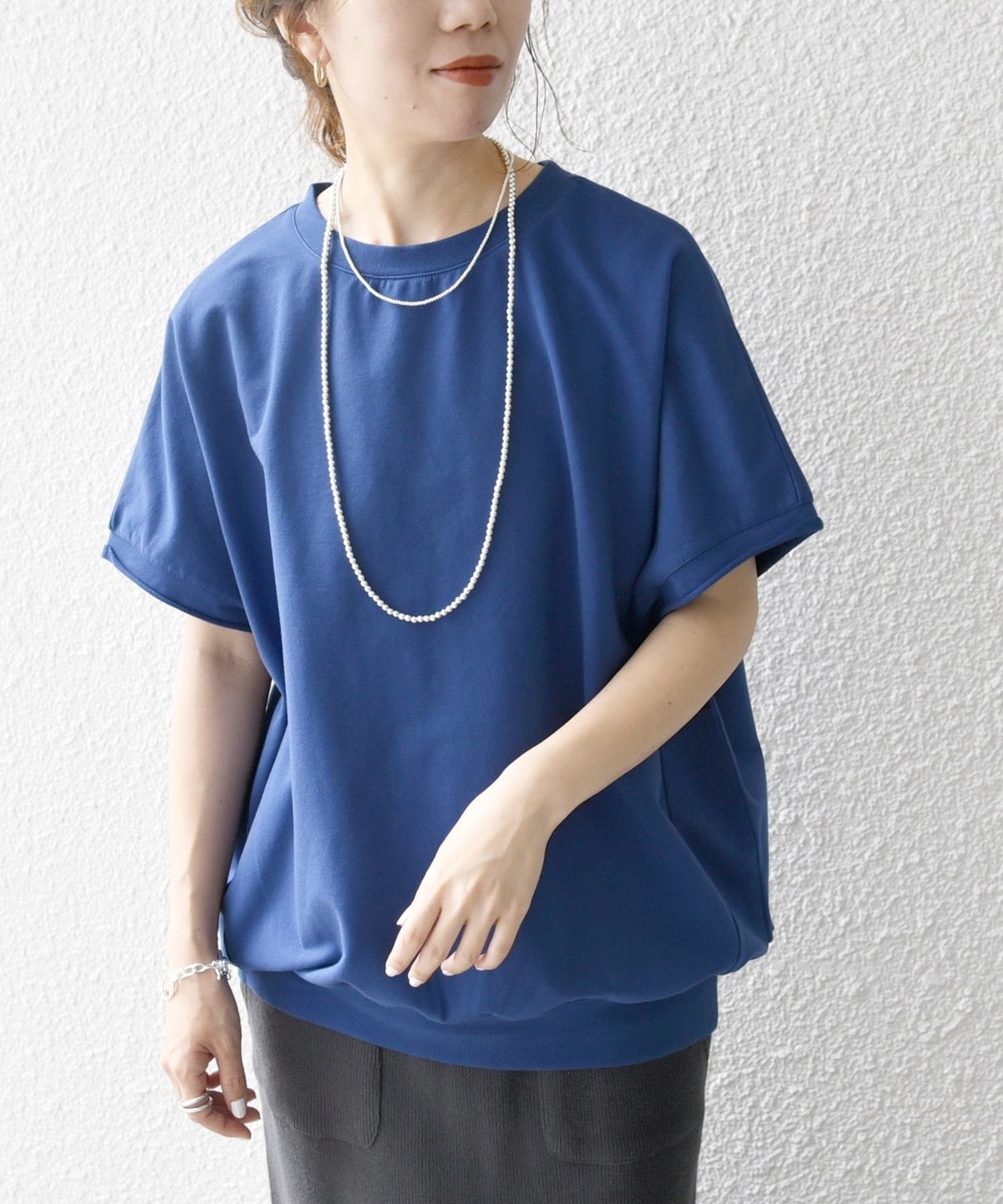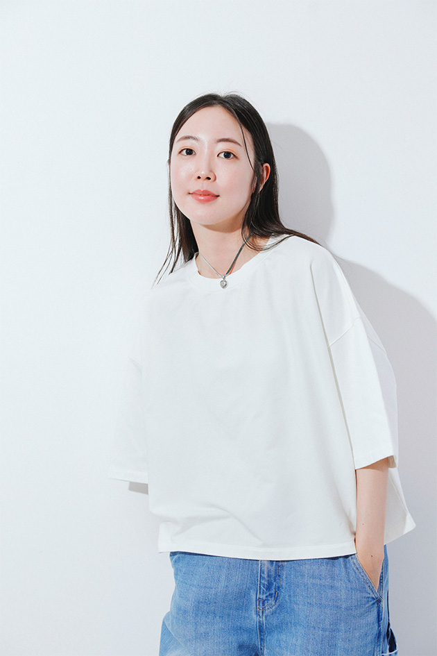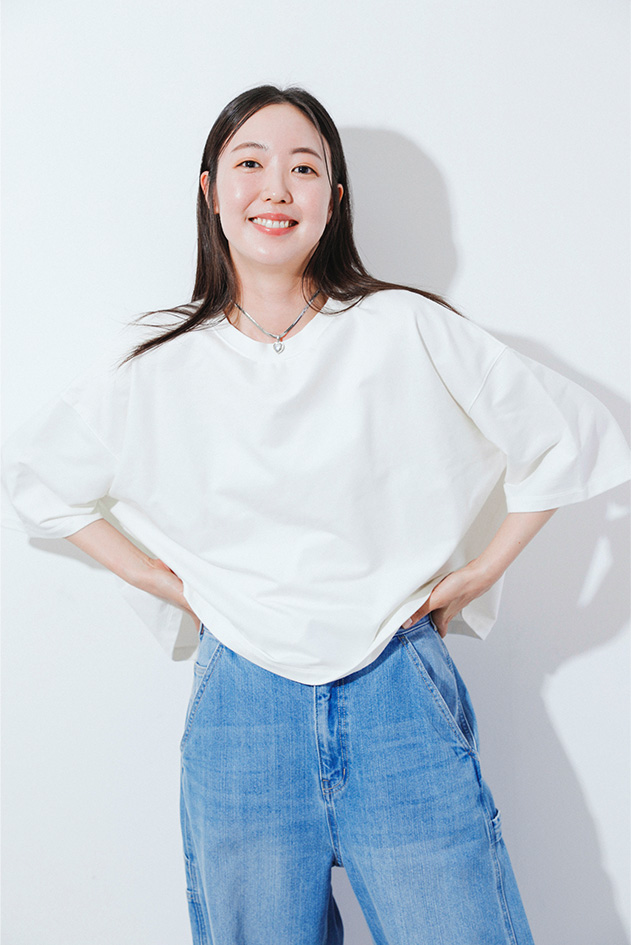さらっとデニム合わせでもキレイめに決まる、そんな大人な無地Tを1枚は持っておきたいもの。程よくルーズなシルエットがシンプルなスタイルに動きをつける。無地だからこそこだわりのシルエットを選んで。
