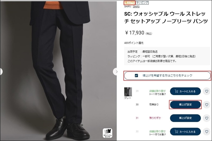 @商品ページ内に【裾上げ可】のアイコンが付いている商品が対象です。(※)