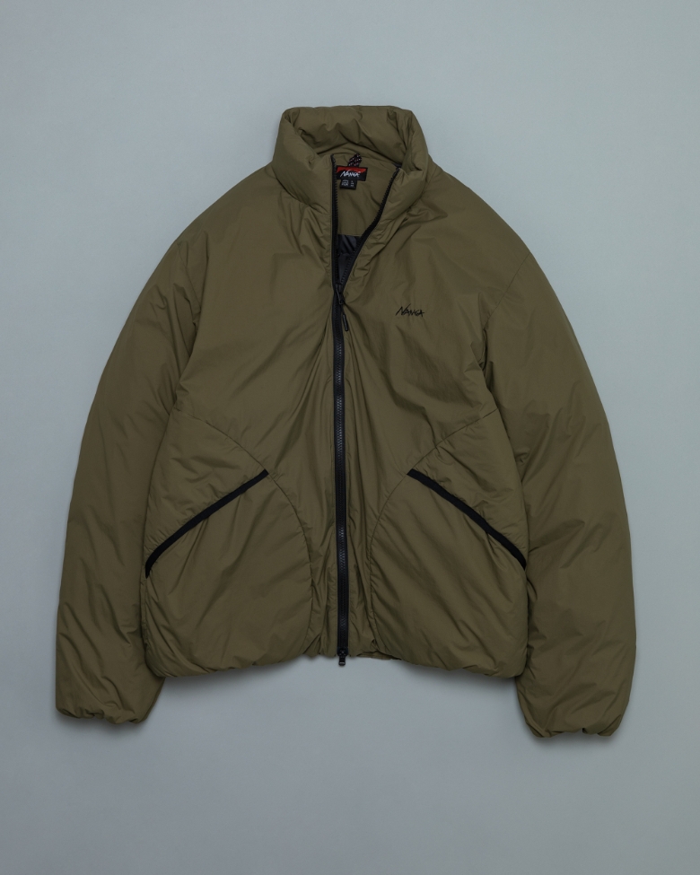 1994年創業の〈NANGA〉は、滋賀県米原市に拠点を置くダウンメーカー。前身の布団メーカーの技術を受け継ぎ、スペイン産の上質な原毛を国内で丁寧に精製する。羽毛の吹込みから縫製までを自社工場で一貫管理する徹底ぶりだ。ステッチを排したミニマルなデザインに、表地は小松マテーレ社のマットな高機能素材。撥水性・防汚性を備え、ペーパータッチの軽さも魅力だ。やや短めの着丈とボックスシルエット、スタンドカラーが今のムードを映す。700フィルパワーの高品質ダウンが、軽さと保温性のバランスを高次元で両立する、技術が生んだ信頼の一着。