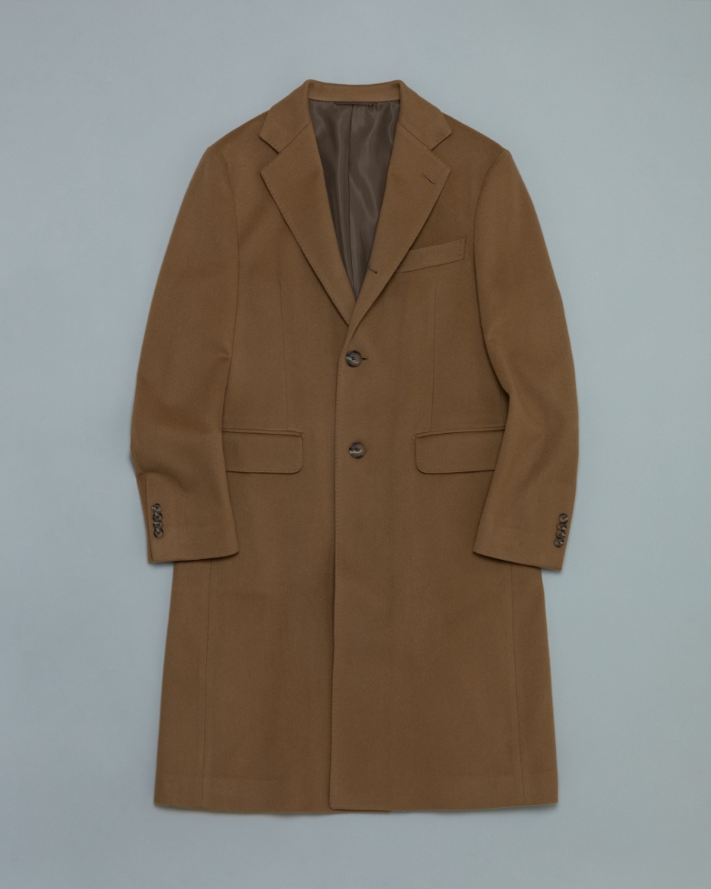 シンプルで定番的なデザインにテーラードの丁寧なものづくりを反映し、クセ取りやいせ込みなど手作業を随所に取り入れて立体的で柔らかに仕立てたチェスターフィールドコート。上質なメリノウールにカシミヤをブレンドしたショートビーバー素材は、カシミヤ特有の柔らかさと肌触りの良さ、上品な光沢を備えつつ、コートに適した絶妙なコシと滑らかさを兼ね備える。素材と仕立てで差がつく、エレガントな一着。