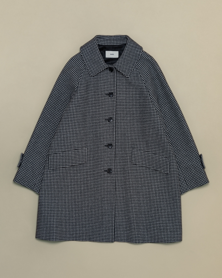 スーパー100’sウールを原料にラムウールをブレンドし、国内で丁寧に紡績・織り・染色したビーバーメルトンのステンカラーコート。膨らみとハリを残しつつ、しなやかでソフトな手触りは、肌に触れた瞬間に上質さを実感できる。毛並みの美しさはブラッシングで簡単に整えられ、着るたびに素材の生命力を感じさせる。Aラインのシルエットとラグランスリーブの優雅な落ち感が、女性らしい品格をそっと漂わせる一着。