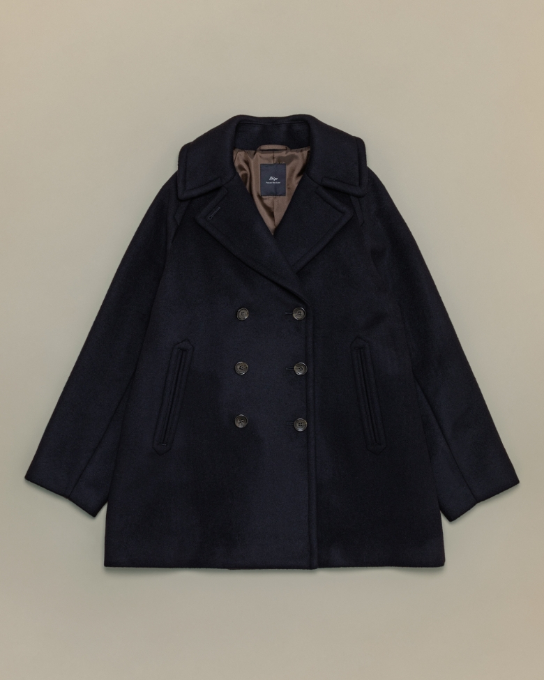 やや寝た優しい襟と6個ボタンの前合わせ、細めの両玉縁ポケットなどクラシカルなディテールと、立体感あるシルエットで仕立てたPコート。スーパー120’sの細番手ウールを薄く起毛させたビーバー仕上げのメルトンは、しっかりとした打ち込みでしなやかさと程よい反発感を併せ持ち、シルエットを美しく整えながら、素材の上質感が着る人の所作まで凛と見せる。色落ちしたストレートジーンズやチノパンなどの定番ボトムさえ新鮮に映え、装いに洗練を添える冬の定番。
