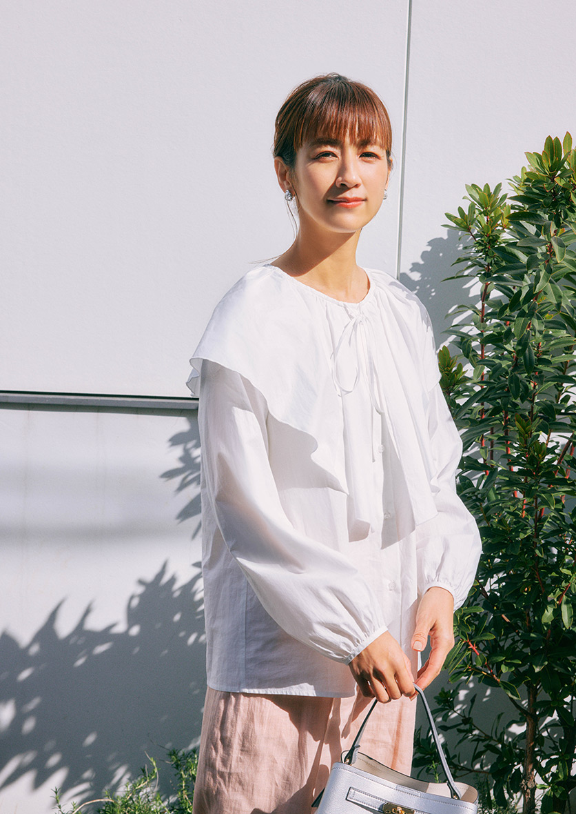 今は、真逆。着ていて『自分が心地いいか、自分らしくいられるか』を大切にしています。シンプルなものが好きですが、40代になってシンプルすぎるのが寂しい気もしていて。襟元にデザインがあるなど、程よくアクセントがあるものに惹かれます。そういうところが自分の個性にもつながるといいなとも思って洋服を選んでいます。
