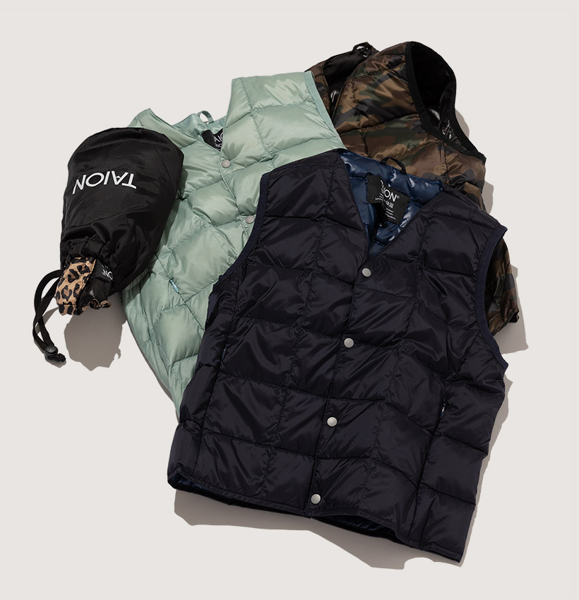 オンライン限定で手に入る〈TAION〉のインナーダウンベストが堂々の第1位。インナーダウン専門ブランドならではの信頼のクオリティから生まれる、800フィルパワーの薄くて軽いあたたかさを手軽に楽しめる。色バリエーション豊富で、コンパクトに持ち運べる収納袋付きなのも嬉しいポイント。重ね着にもぴったりで、春先まで長く活躍。シンプルなデザインだから、毎日のコーディネートにすっと馴染むのも魅力。