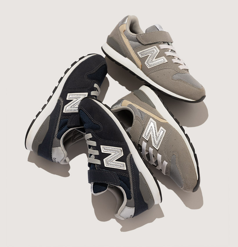 〈new balance〉の人気モデル「996」のキッズバージョン。踵に搭載されたCR(カウンタリーインフォーサー)が安定感を生み、クッション性と屈曲性を高めたソールで元気に走り回る日々も快適。面ファスナーにはロゴをあしらい、着脱もスムーズ。グリップ性と耐久性に優れたラバーアウトソールで、あらゆる動きにしっかりフィット。きれいめコーデにも自然になじむ、頼れる万能シューズ。