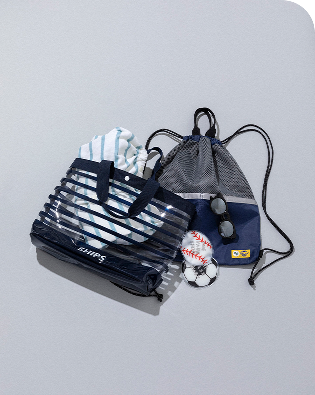 SHIPS KIDSの最新コレクションから、おすすめの水着や一緒に連れて行きたいグッズをお届け。