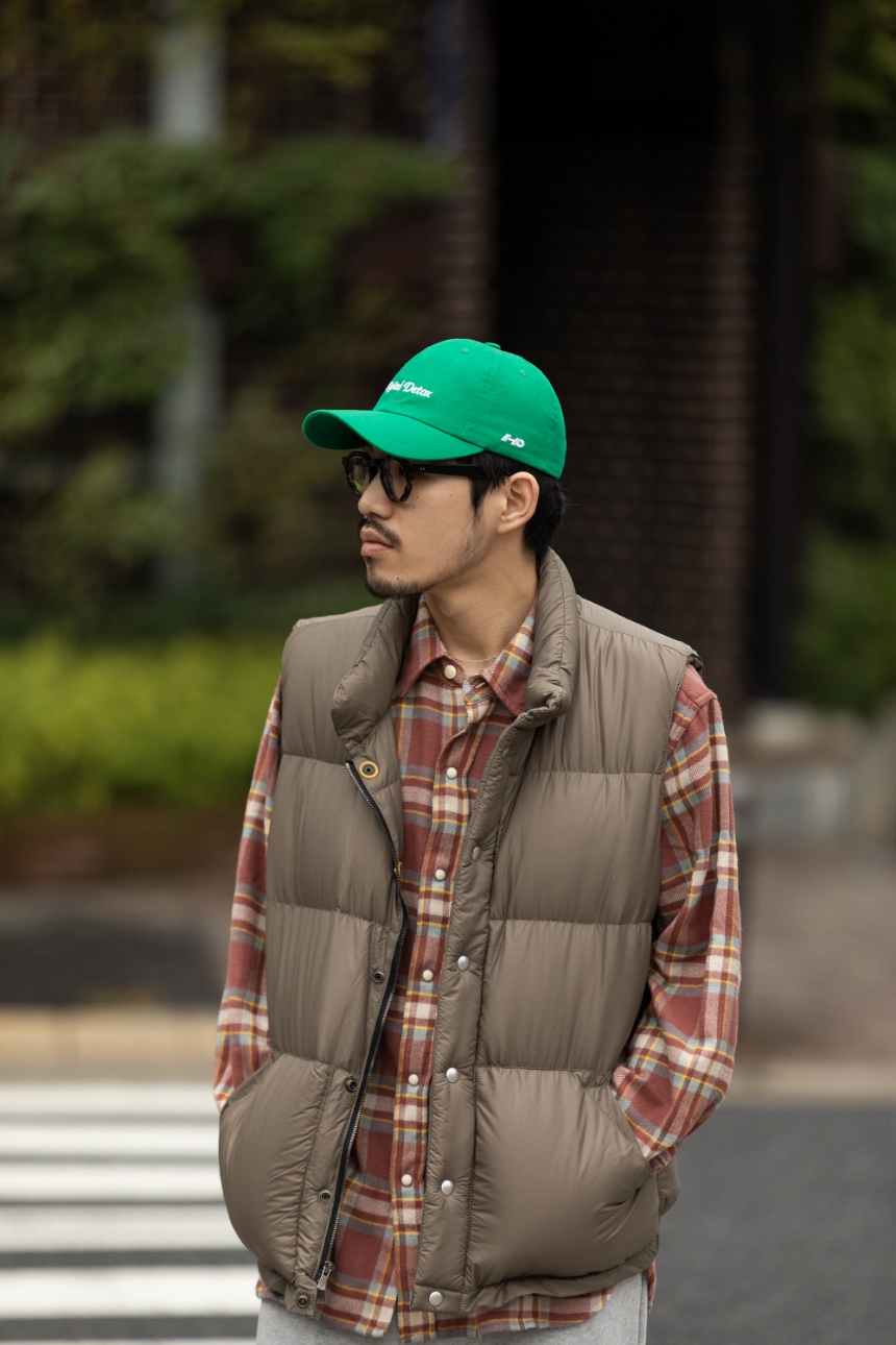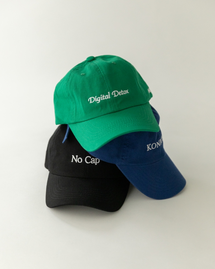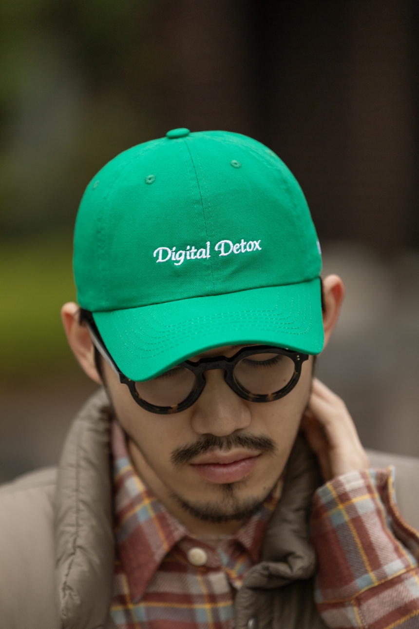 2015年にロサンゼルスで設立され、ユニークなフレーズを落とし込んだベースボールキャップで知られる〈HO HO COCO〉とのコラボレーション。さりげないユーモアを効かせたデザインが魅力だ。“Digital Detox”は、情報から一度距離を置き、思考と感覚をリセットするというメッセージ。“No Cap”=嘘じゃない、という正直な美意識を被るのも洒落ているし、コミュニケーションのきっかけになりそうな“KONICHIWA”もキャッチーで愛嬌がある。もちろん、すべてアメリカ製だ。