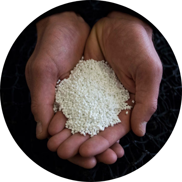サプライチェーンパートナーと緊密に連携しながら、回収された漁網は処理され、再構築されて、100%リサイクルナイロンペレットへと生まれ変わります。これらのペレットは、糸として紡がれ、織物になります。