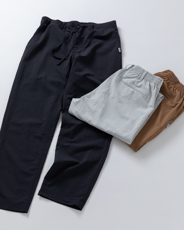アウトドアパンツのような素材でありながら、タウンユースにフィットする定番型のイージーパンツ。ストレッチが入っていない分ゆったりとしたシルエットで、シーズンレスで使える汎用性の高さもポイントの万能な一本。
