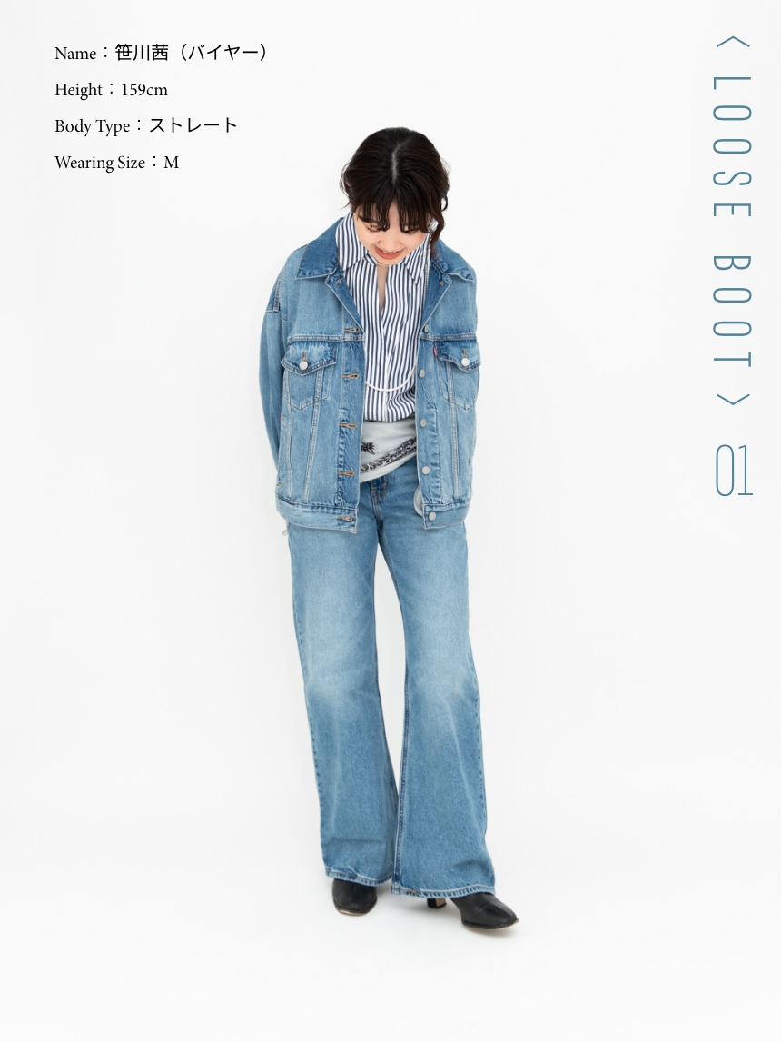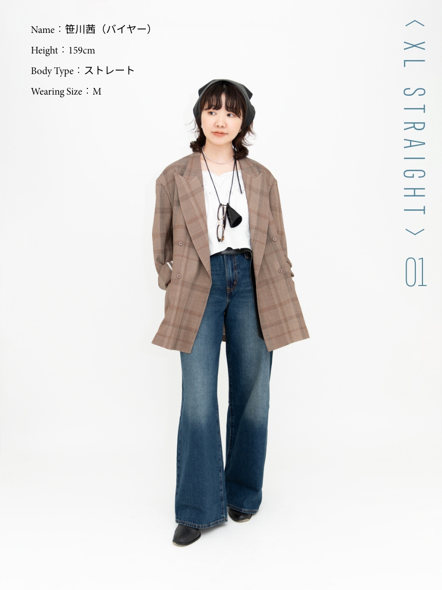 笹川 〈Levi’s®〉は、デニムのルーツともいえる存在。本場アメリカ生まれならではの潔いカジュアルさが魅力です。歴史や背景まで含めて、“デニムらしさ”がいちばん伝わるブランドだと思います。そのうえで、シルエットやカラーのバリエーションが豊富で、クオリティに対する価格のバランスも優秀。デザイン面でも価格面でも、挑戦しやすいところはさすがです。トレンドとして再注目されている今だからこそ、原点に立ち返るように〈Levi’s®〉を選んでほしい。そこに自分なりのバランスや感覚を足して、自由に楽しんでいただけたらうれしいです。