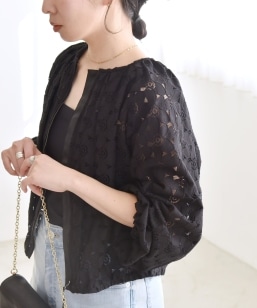 quaranciel:〈手洗い可能〉フラワー レース ジップ ブルゾン