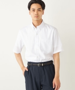 SHIPS: カラミ織り ボタンダウン 無地 半袖 シャツ