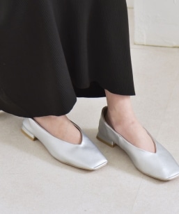 quaranciel: Vカット スクエア トゥ フラットシューズ