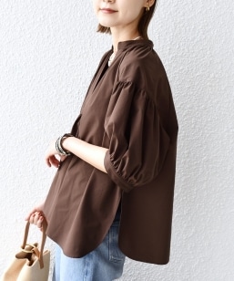 〈接触冷感 / 撥水加工〉TEX BRID(R)タフタ スキッパー 5分袖 ブラウス