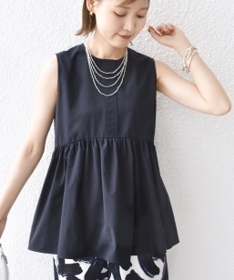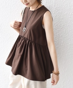 〈手洗い可能〉カラミ ペプラム ノースリーブ ブラウス
