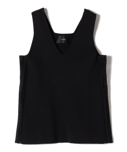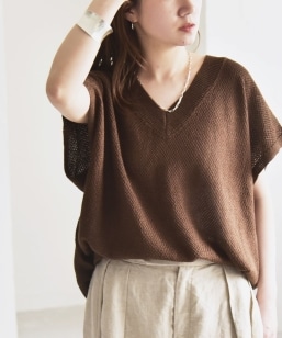 quaranciel:〈手洗い可能〉ラミー ミックス Vネック ノースリーブ シアー ニット