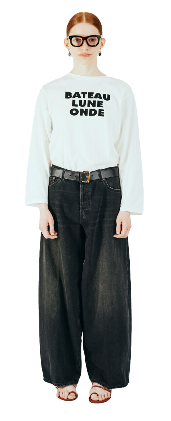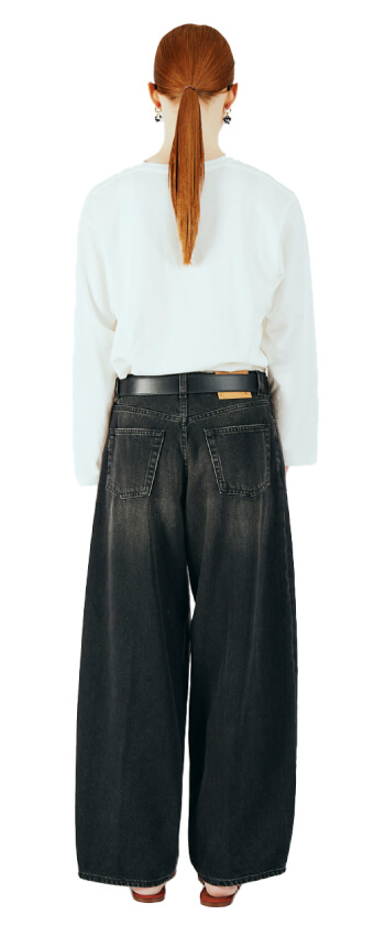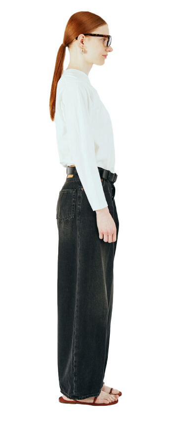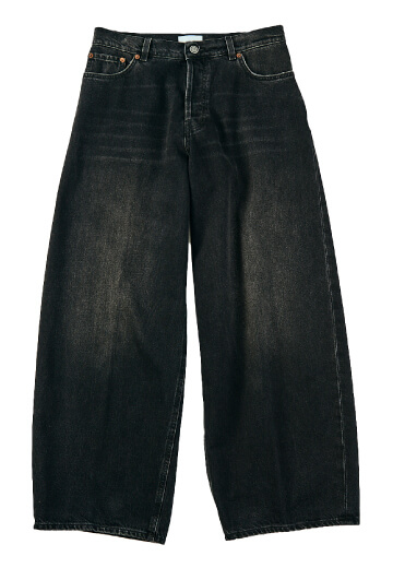 普通のデニムだとカジュアルすぎてパンチが足りないという方に、全力で推したいのがこちら。どの角度から見てもボリュームたっぷりの極太ワイド幅が自慢。トレンドの腰穿きなのでガラッとスタイリングに変化がつき、削ぎ落としたスタイリングでも映えること間違いなしです。こちらはヨーロッパのデニム業界を引っ張るメイドインイタリアのアイテム。見た目に反して、どの身長の方もバランスが取りやすいのも密かにポイントなんです。